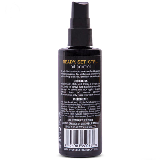 Static Ready. Spray. Control. oil & shine control setting spray KFP