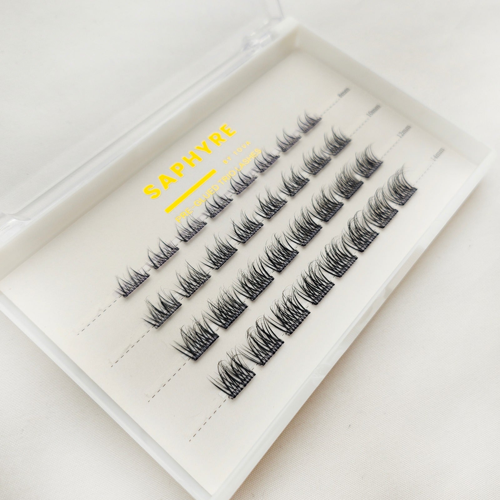 Saphyre by Tova Pre-glued Trio Lashes provide easy, messy-free, and natural-looking enhancement for your eyes. With pre-glued cluster lashes, you can enjoy effortless application, making your lash application a breeze. These lashes will give you the perfect touch of glam without any hassle. Experience the difference with Saphyre.