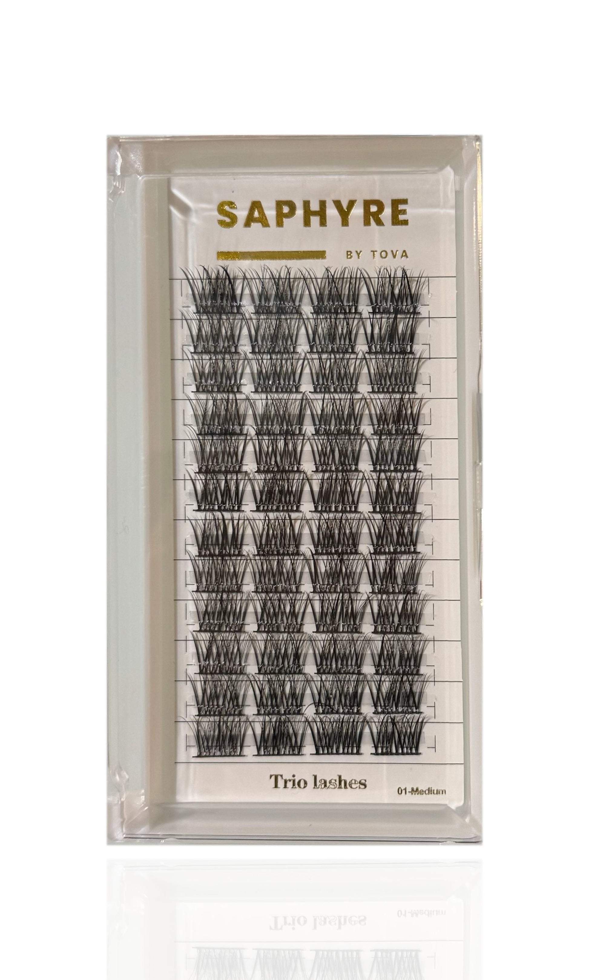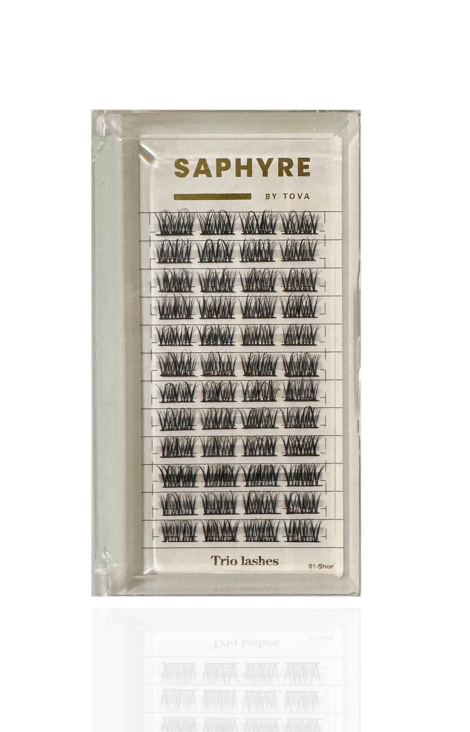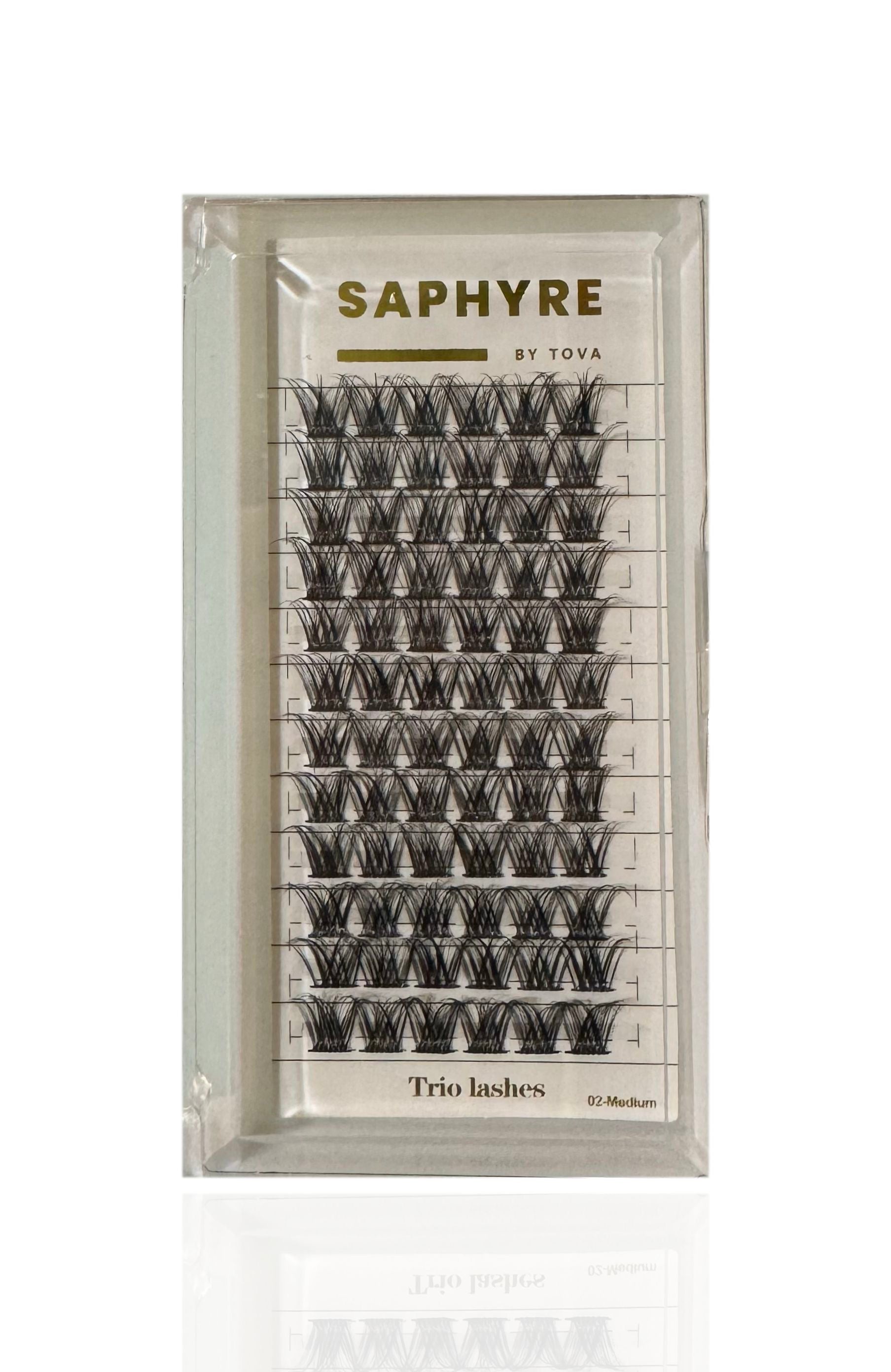 Introducing Saphyre by Tova Trio Cluster false lashes - the perfect blend of fluffy volume and simple application. Say goodbye to complicated lash routines and hello to effortless beauty. Experience the benefits of full lashes without the hassle.